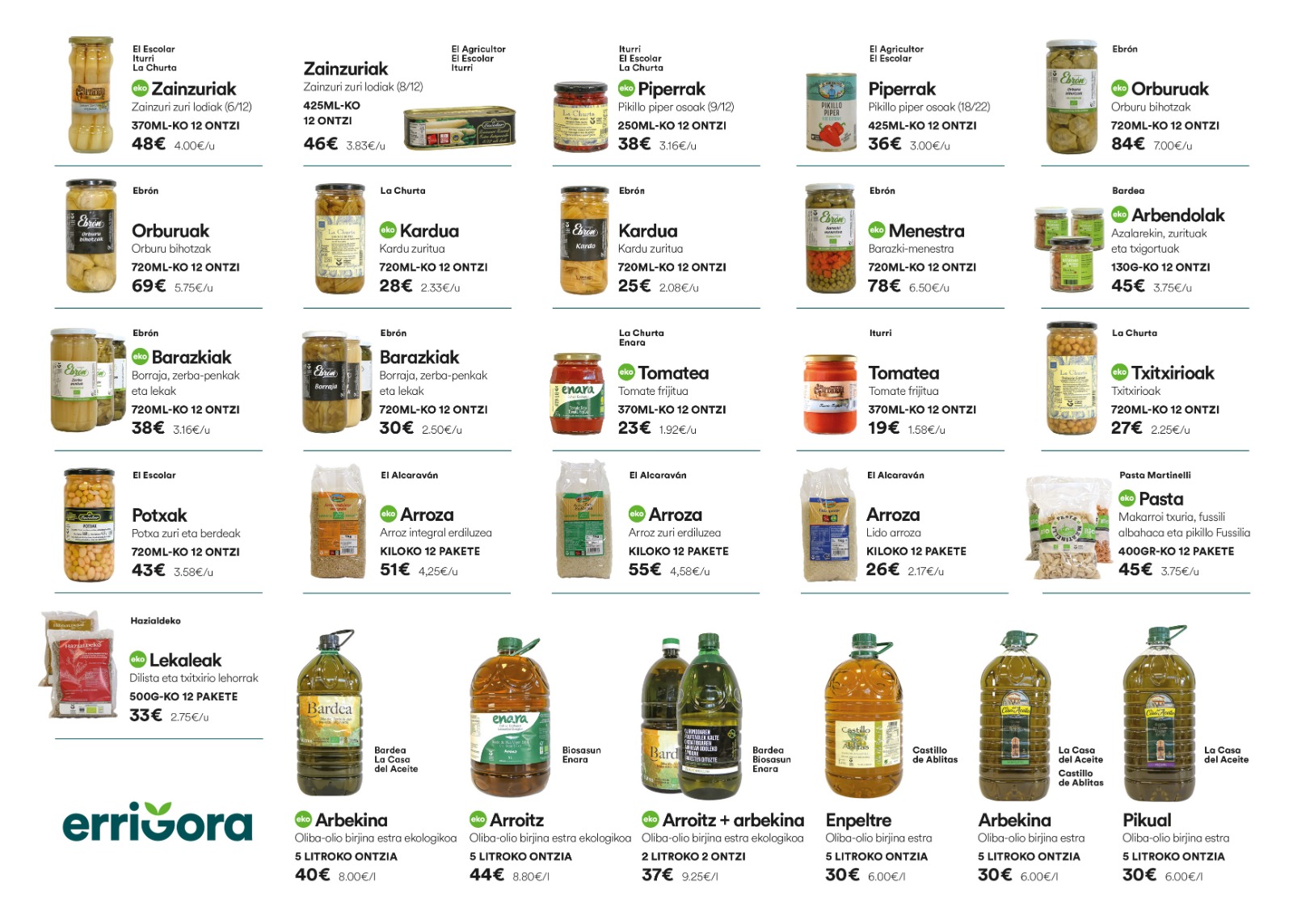 Nafarroa hegoalde eta erdialdeko 🫒 oliba-olio birjina estra, 🥫 kontserbak, 🌾arroza, 🍝 pasta eta askoz gehiago. Euskaraz, auzolanean eta ekoizlearen jatorrizko prezioan.