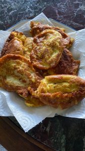 Amaitzeko, eta oso inportantea , torrijak joango diren platerean, sukaldeko papera jarri, soberan dagoen olioa xurga ditzaten. Eta torrijen gainetik azukre kanelarekin hautseztatu.