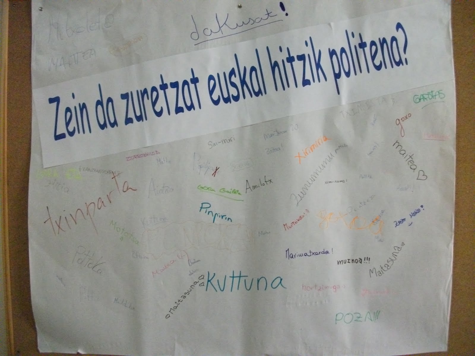 Euskara Eguna izan zela eta, B1 eta C2 atarikoa taldeetan, euskarazko hitzik politena eta itsusiena zeintzuk iruditzen zaizkigun komentatzen aritu ginen. Bat bakarra aukeratzea ez da, ez, lan erraza!